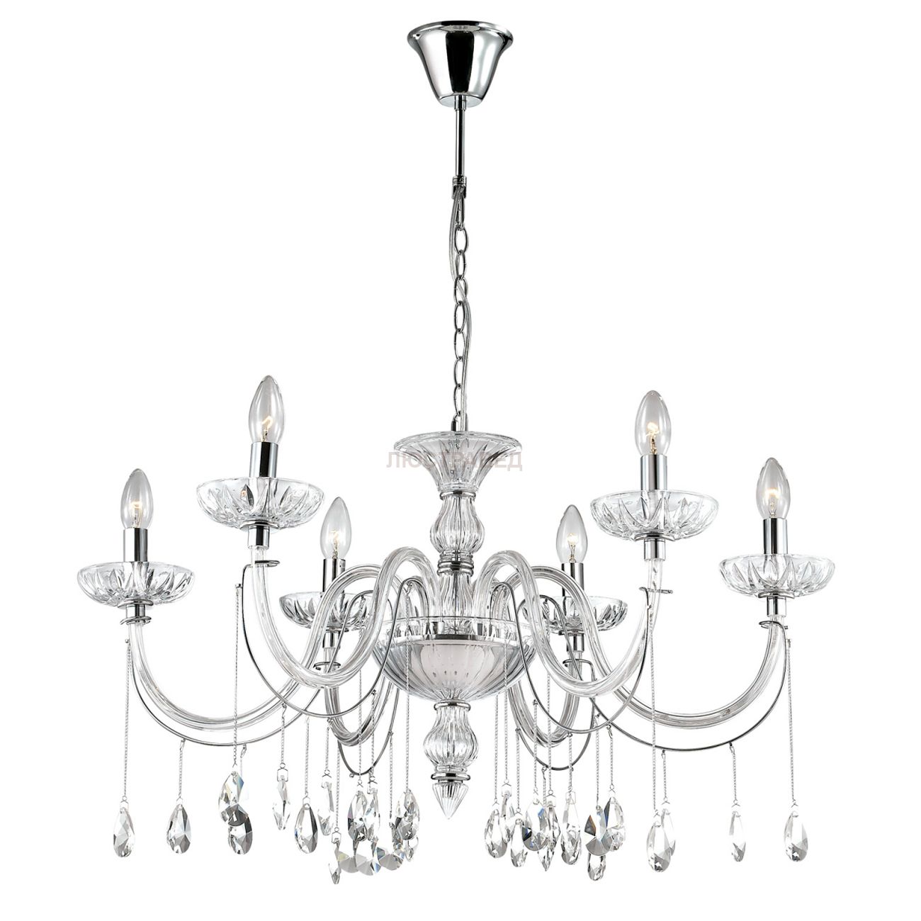 плафон: стекло ручной работы в стиле Murano glass прозрачное, арматура: стекло, декор: металлические цепочки, хрусталь