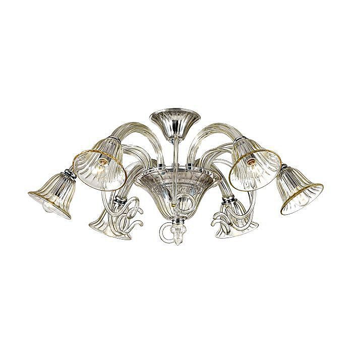 плафон: стекло ручной работы в стиле Murano glass прозрачное с золотистым оттенком, арматура: металл, декор: стеклянные декоративные элементы