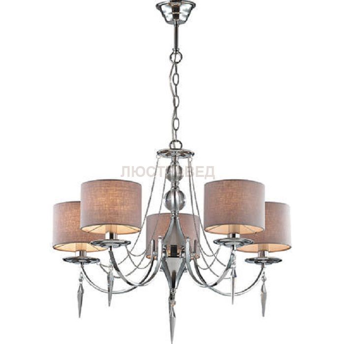 Арматура, декор: декоративные металлические цепочки, хрустальные подвески, стеклянные декоративные элементы на центральной штанге; плафон: тканевый абажур