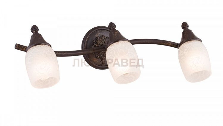 Каркас из металла. Плафоны из матового стекла с рисунком.