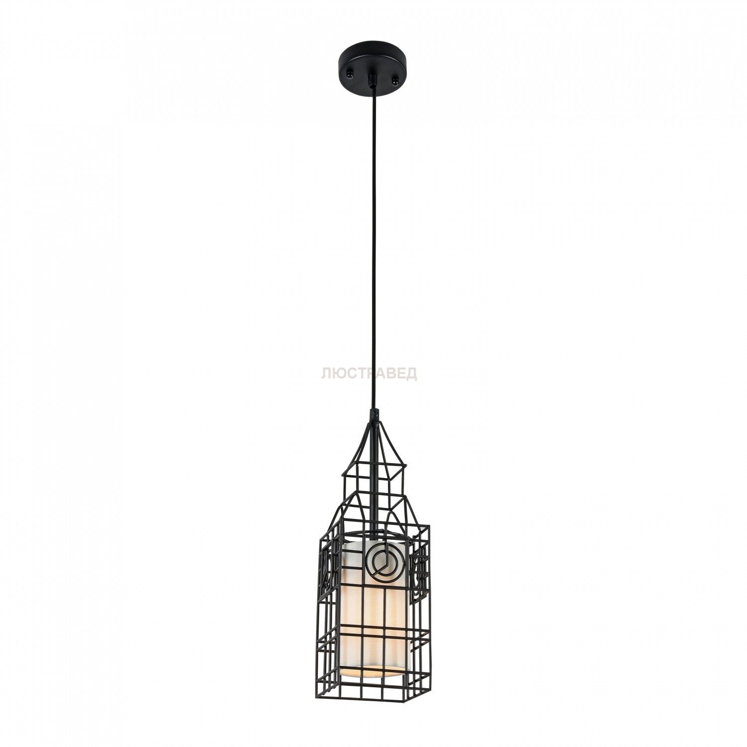 Каркас из металлических прутьев в виде мировых произведений архитектуры. Плафон из белого хлопка.