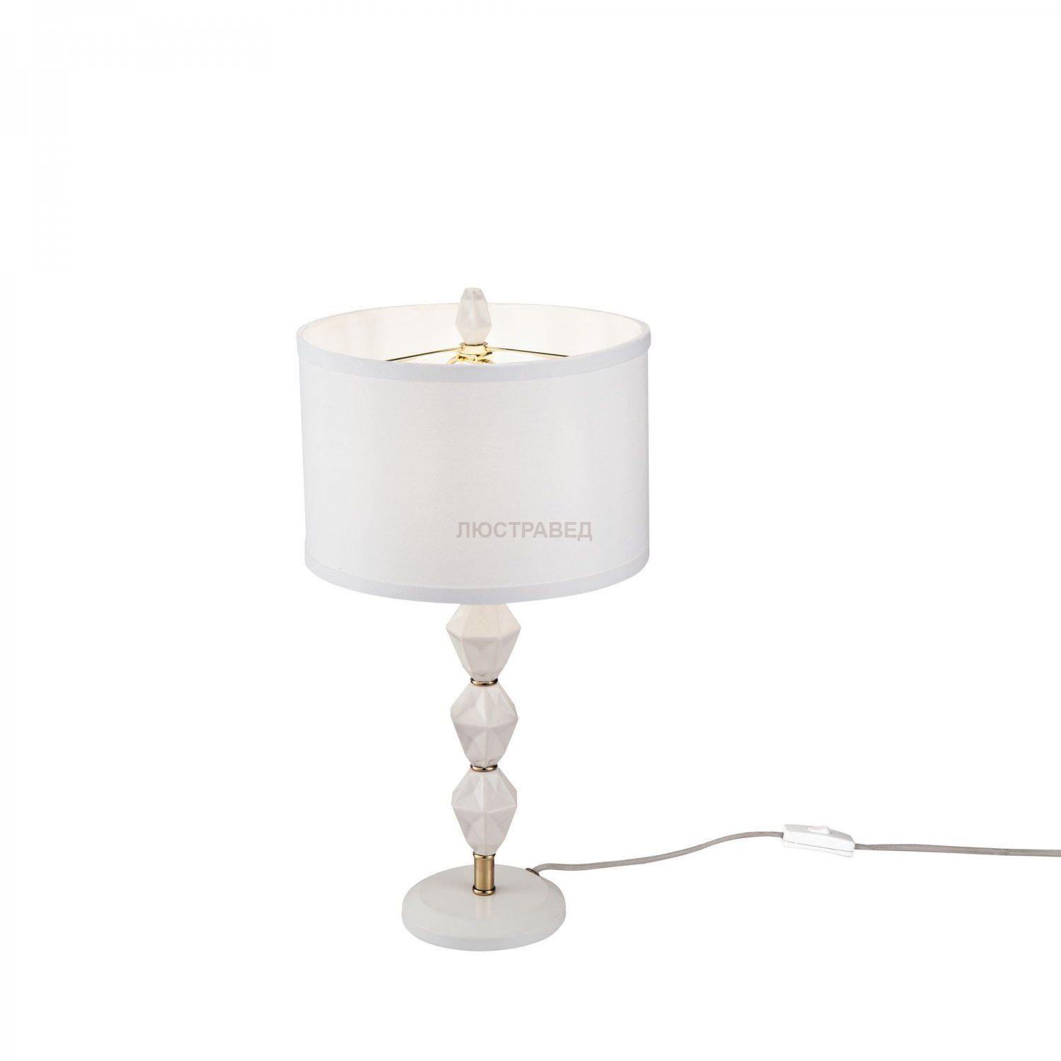 Керамическое основание. Абажур из ПВХ покрыт льяной тканью.