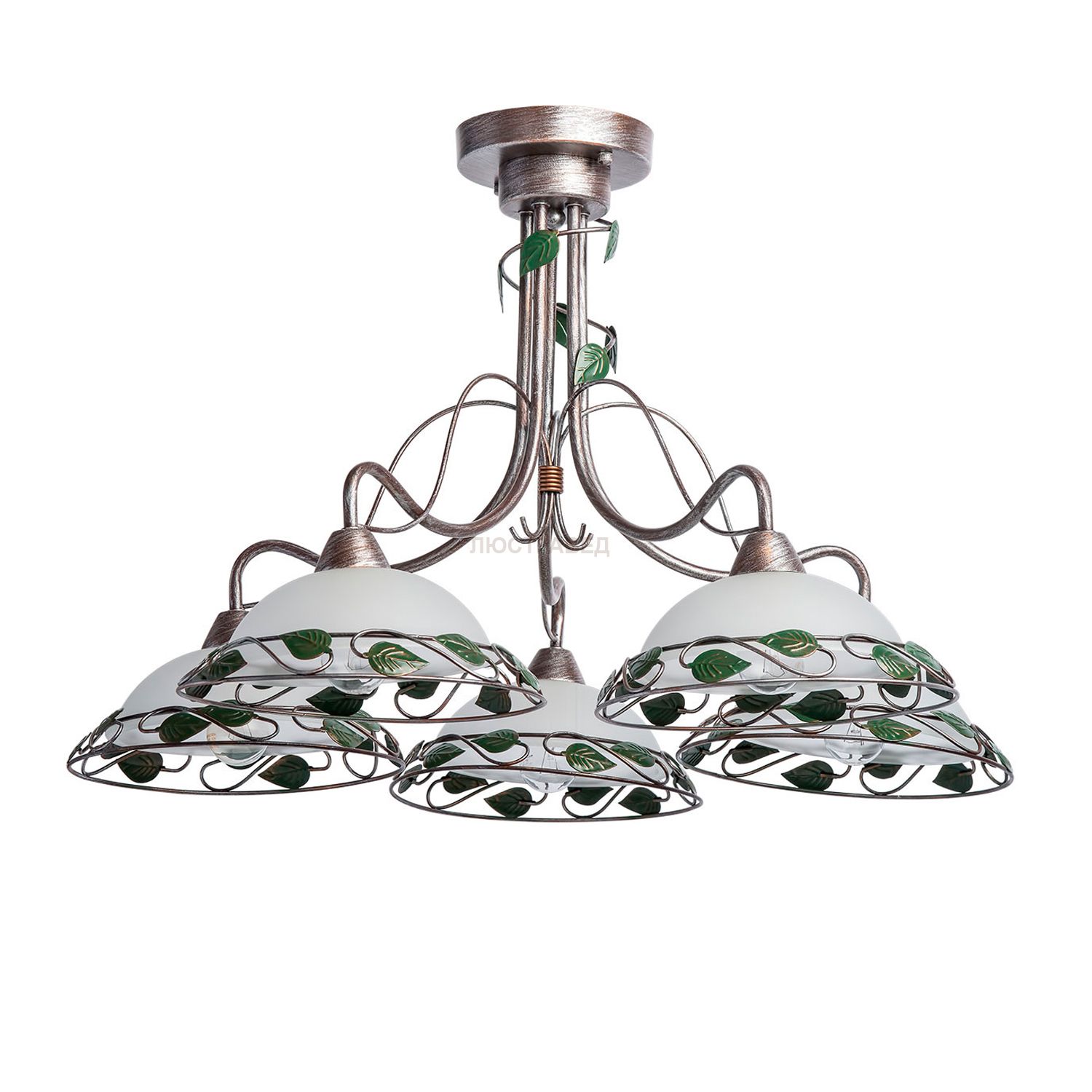 Крашеное металлическое основание цвета кофе с серебряной патиной, стеклянные плафоны