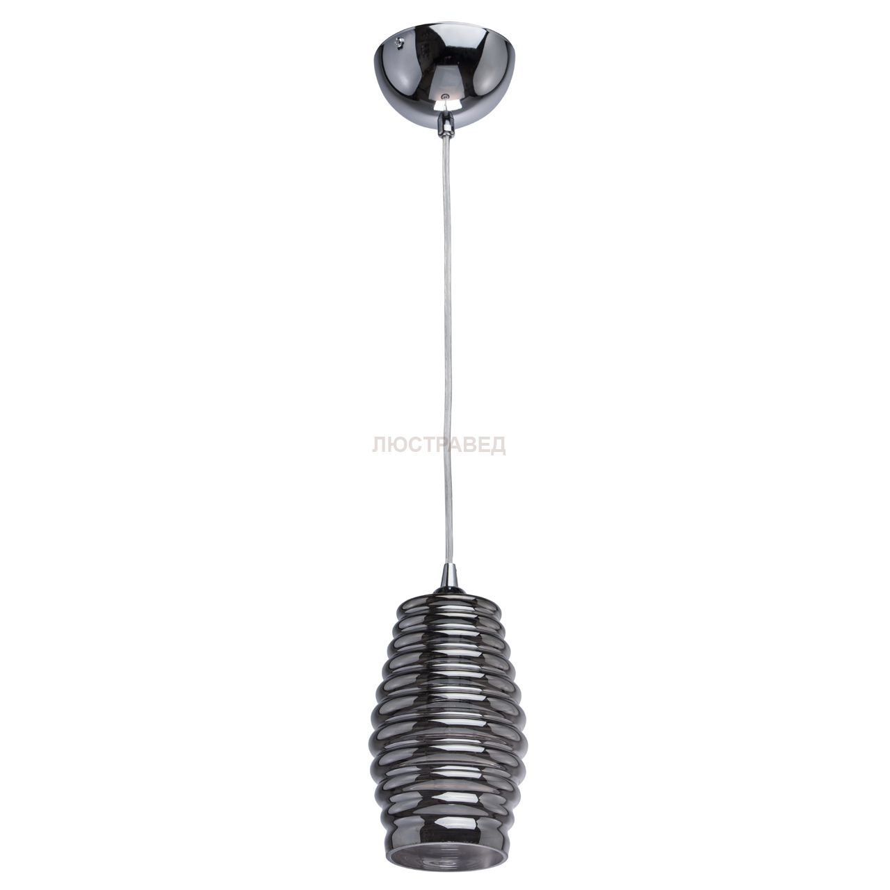 Арматура выполнена из стали, гальванизированной в цвет хрома. Плафон: рифленое стекло глянцевого дымчатого цвета