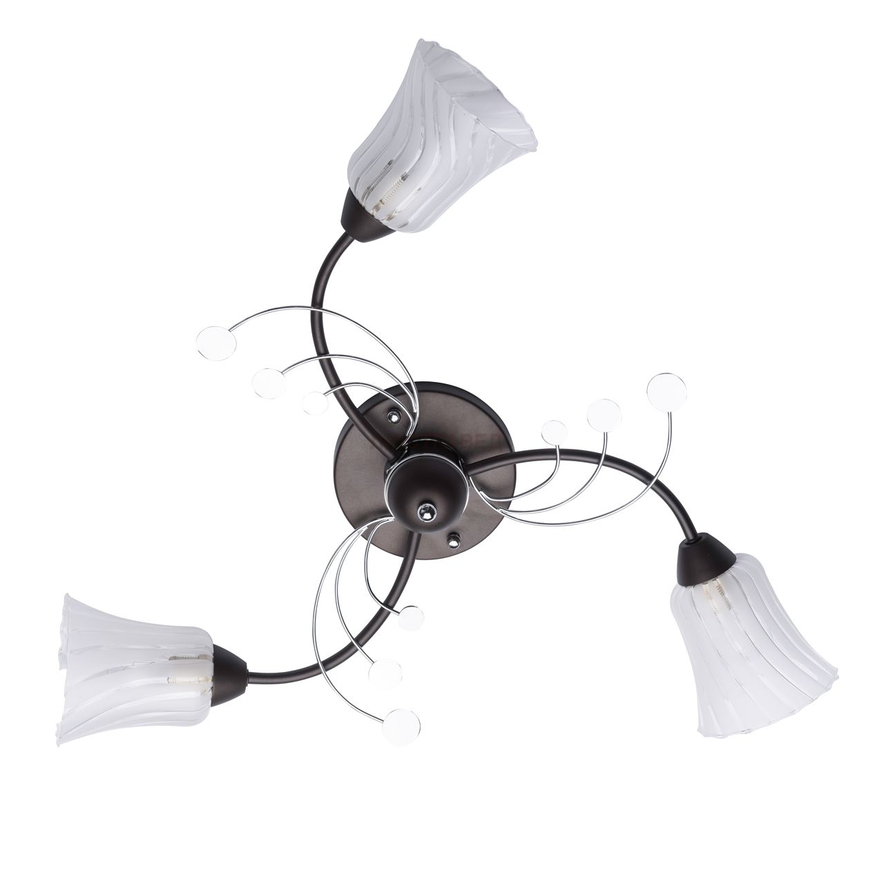 Mеталлическое основание цвета кофе, декоративные элементы цвета хрома, плафоны из стекла