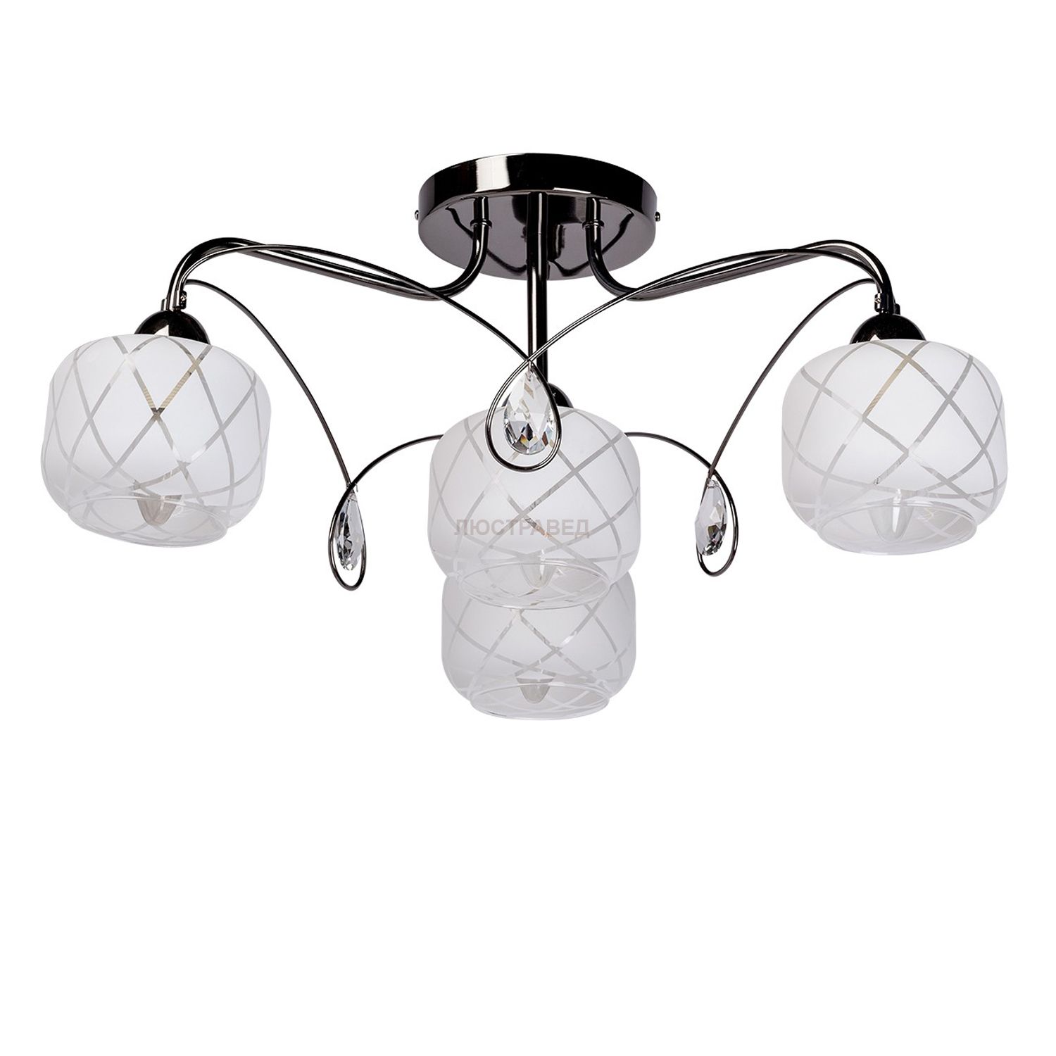 Лаконичный дизайн - плавные формы стеклянных плафонов эффектно сочетаются с изысканным хрусталем. Высокие параметры освещенности. В декоре используется хрусталь. Модное дизайнерское решение – сочетание арматуры цветаникель и белых плафонов. Демократичная цена!