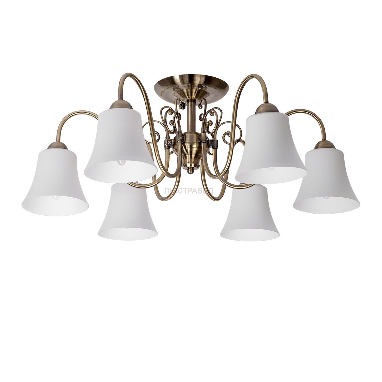 Металлическое основание цвета античной бронзы, матовые стеклянные плафоны.