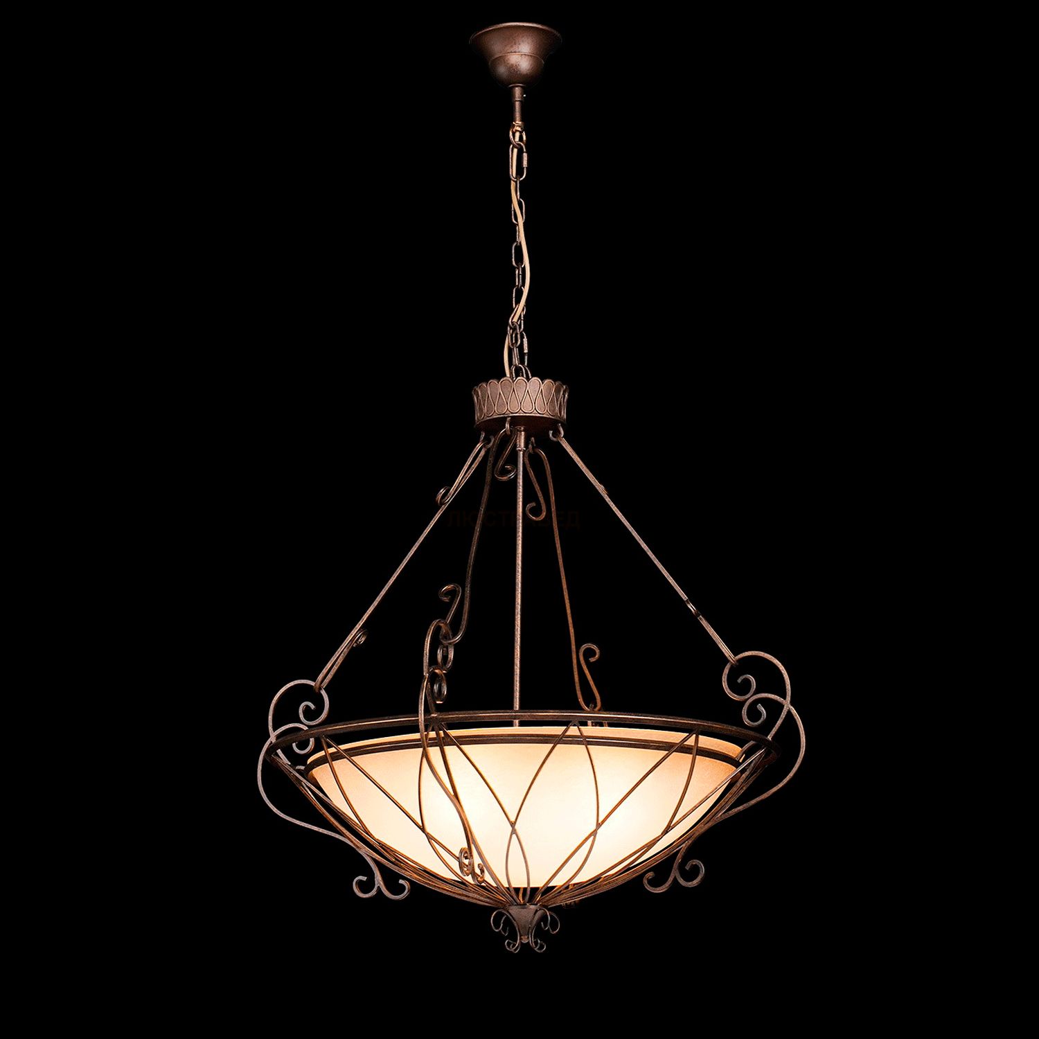 Кованое металлическое основание, плафон из матового стекла