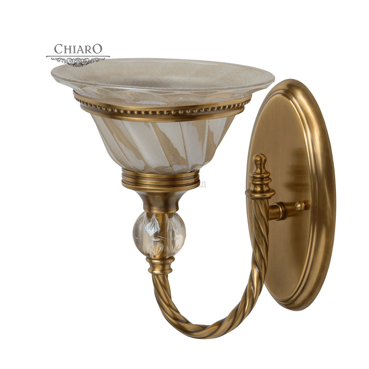 Основание из латуни, плафон из гальванизированного стекла цвета "Шампань", декоративные элементы их хрусталя