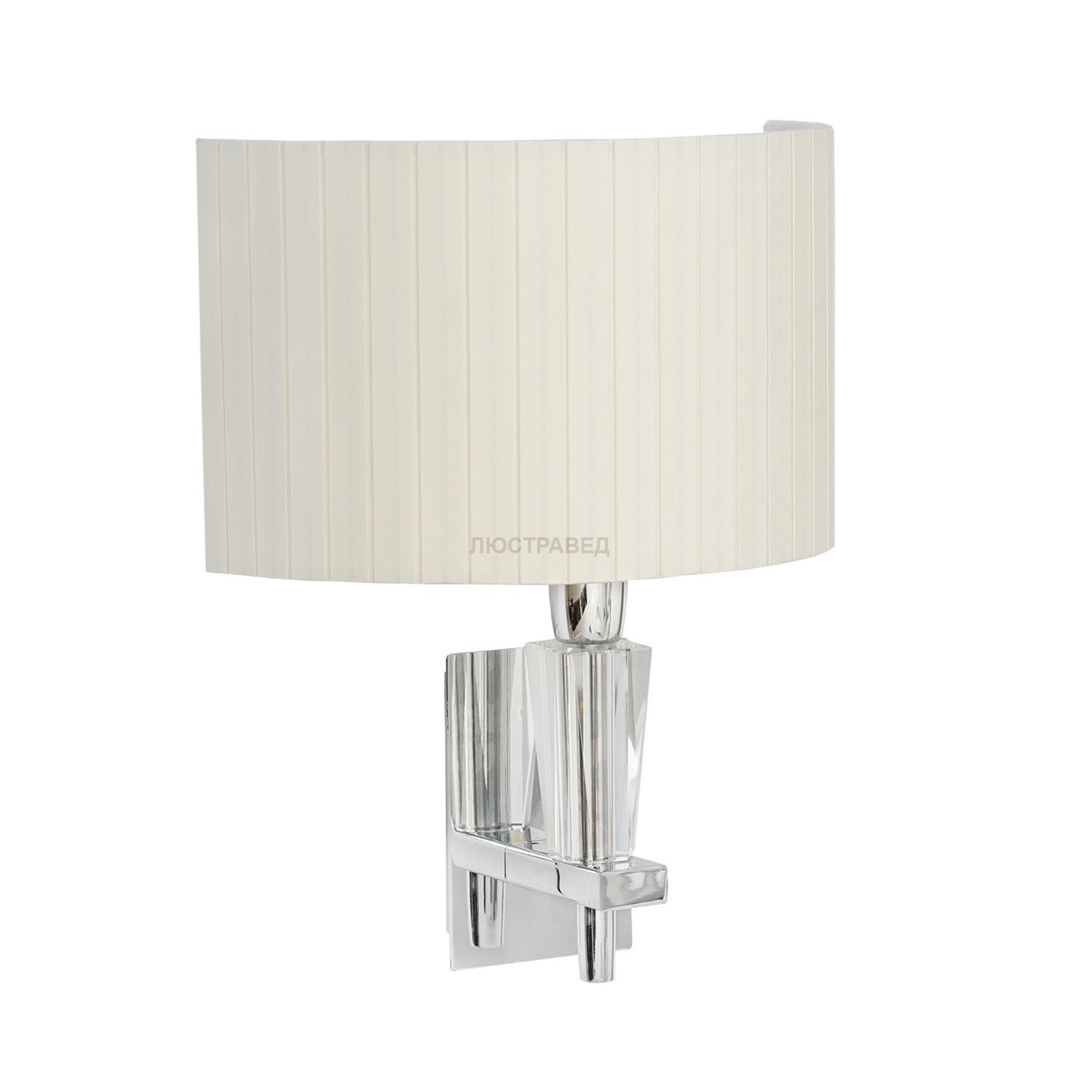 Металлическое основание цвета хрома, текстильный абажур, декоративный элемент из хрусталя
