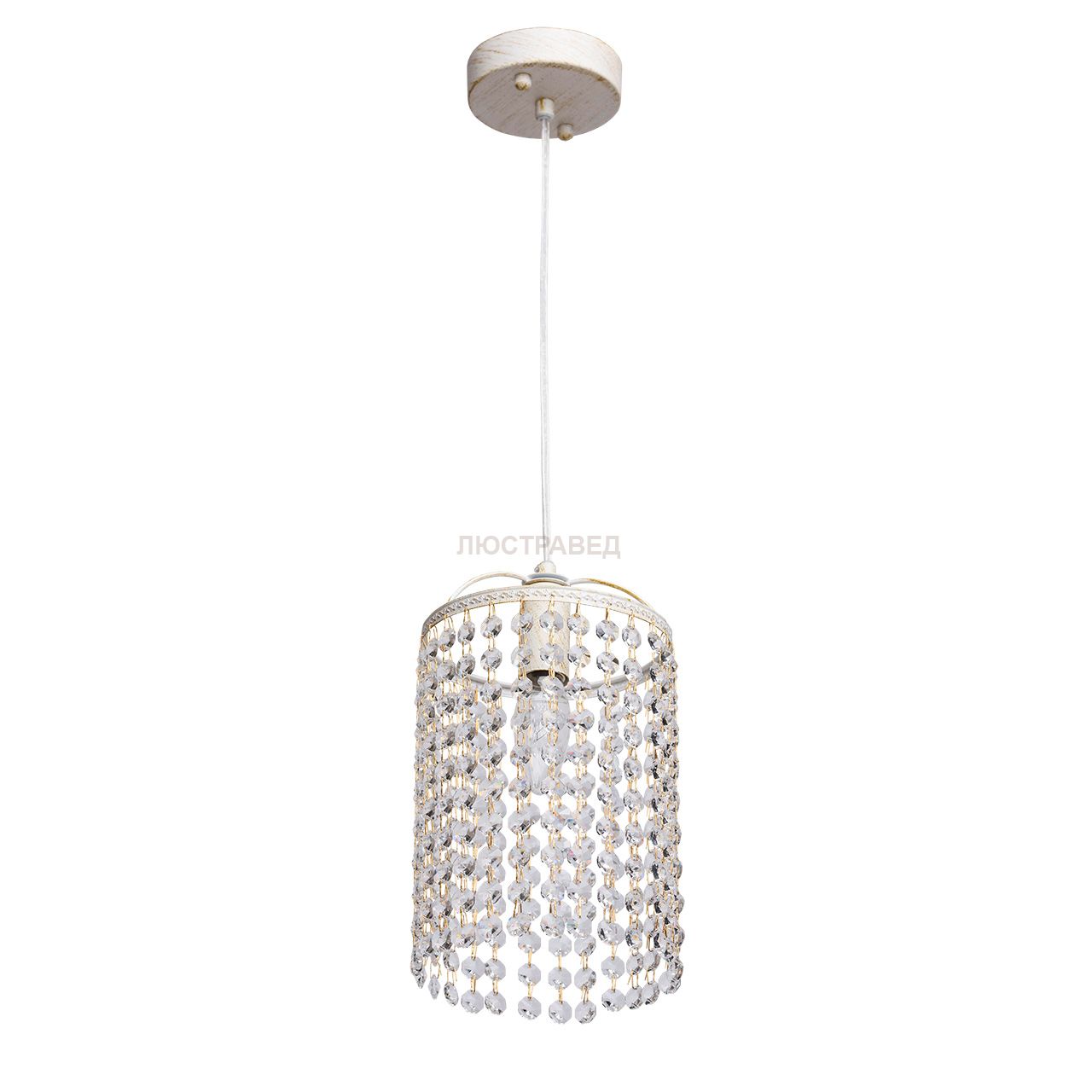 Крашеное металлическое основание в белый матовый цвет с золотой патиной, декоративные элементы из хрусталя