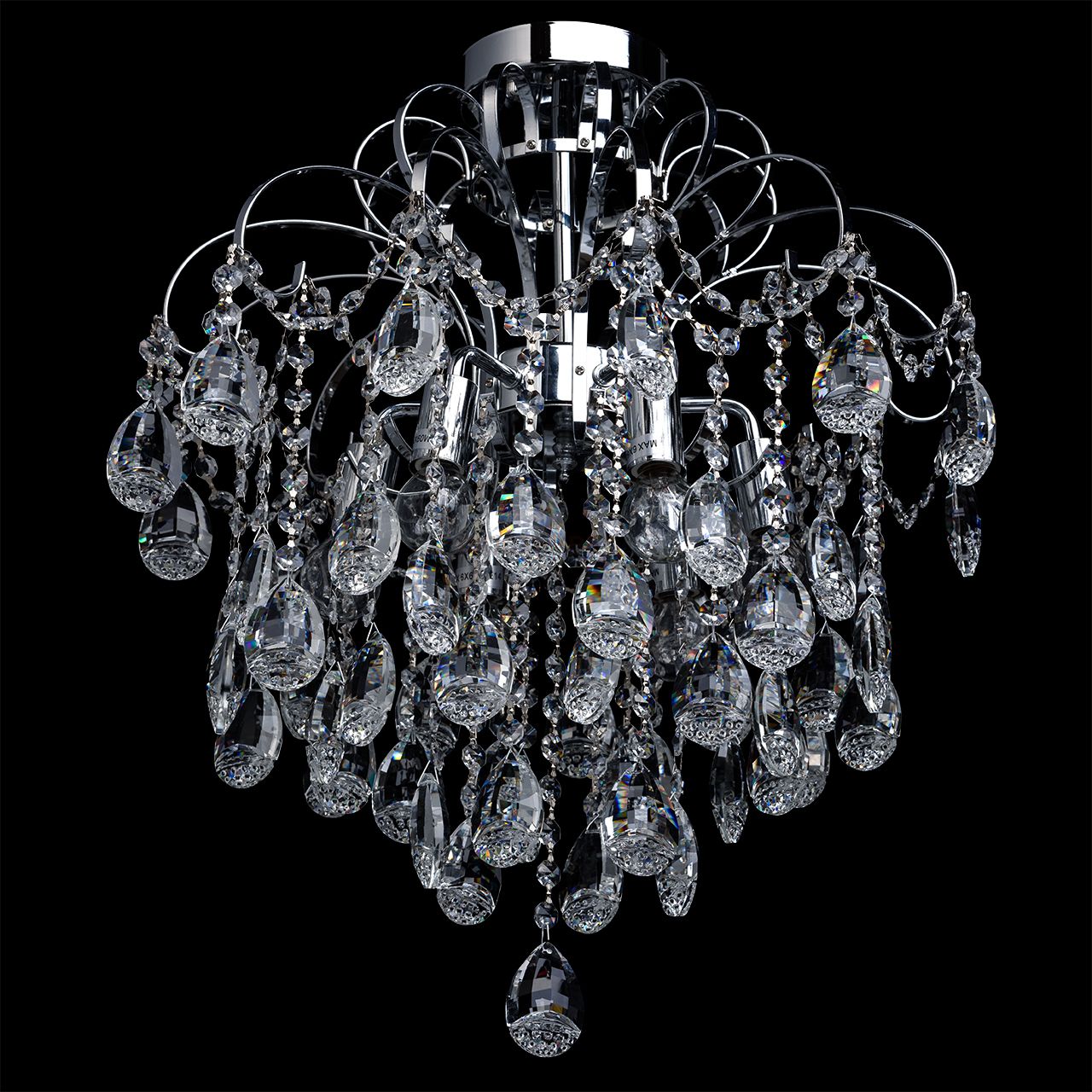 Металлическое основание цвета хрома, декоративные подвески из хрустального стекла.
