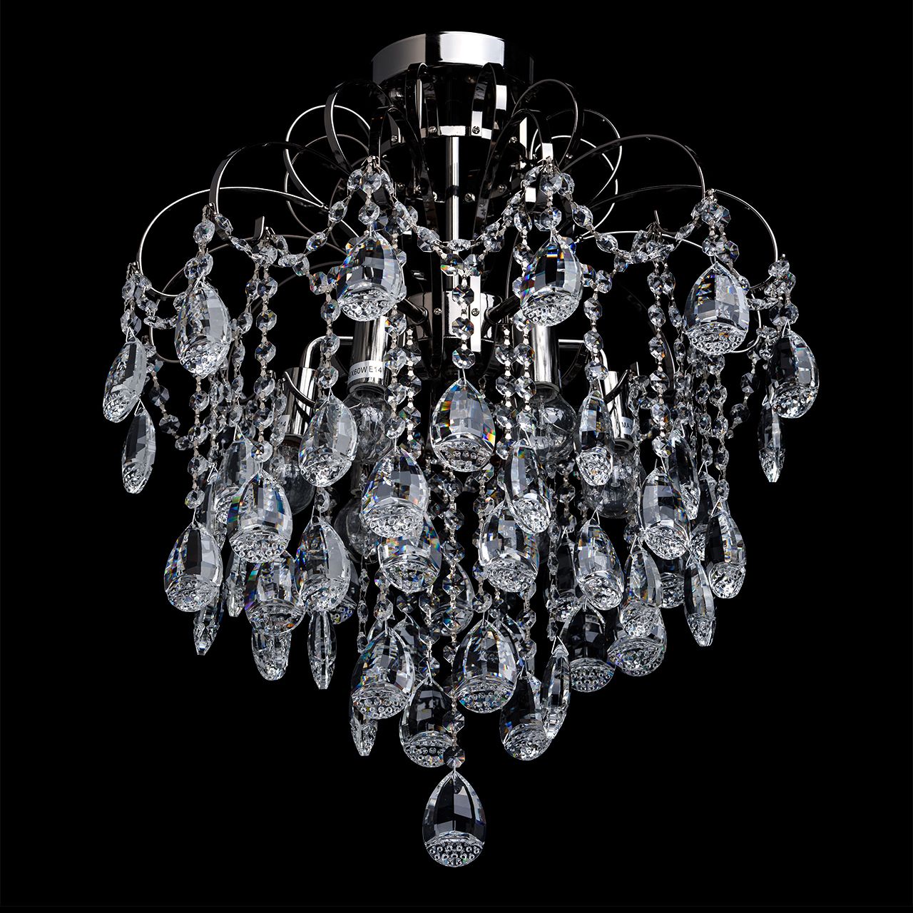 Металлическое основание цвета никеля, декоративные подвески из хрустального стекла.