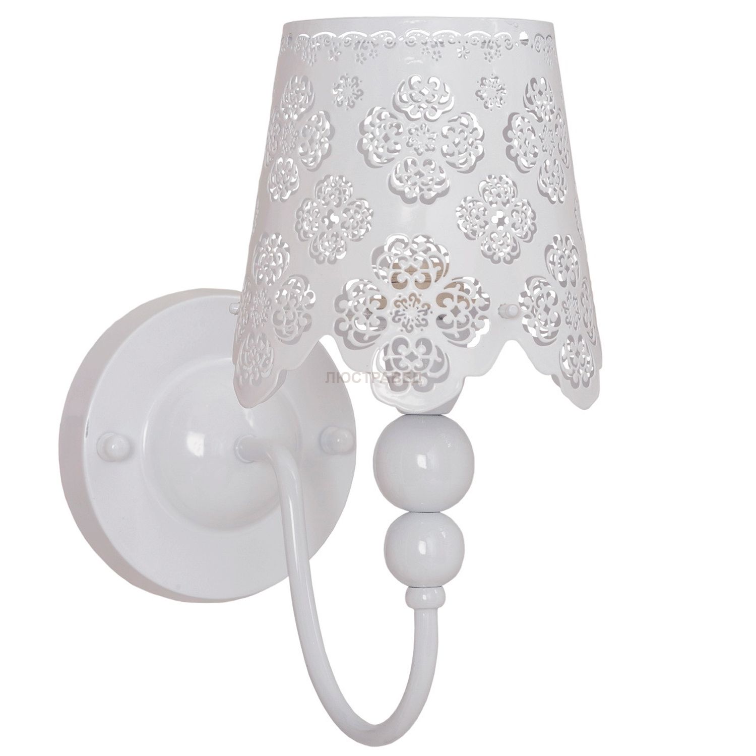 Основание и абажур изготовлены из крашеного металла белого цвета.