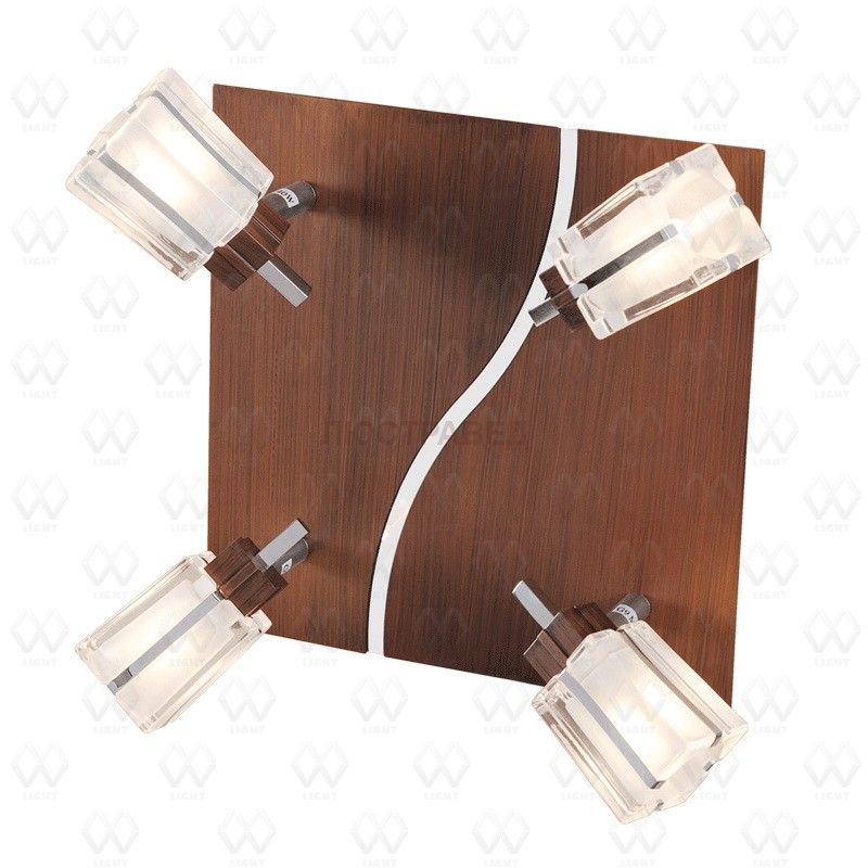 Металлическое основание цвета хрома, декоративные элементы из металла цвета дерева, стеклянный плафон