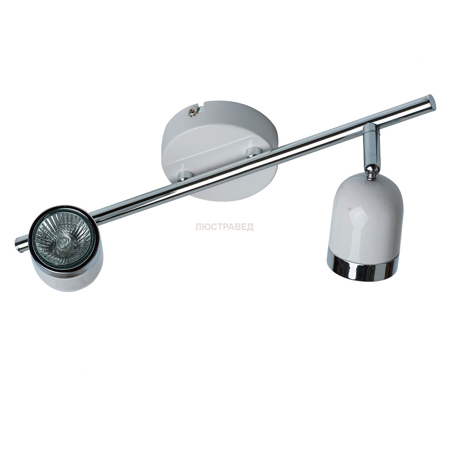 Арматура светильника выполнена из сплава металла и окрашена белой эмалью. Белый цвет выгодно подчеркивают элементы, гальванизированные в цвет хрома. Плафоны на шарнирах. Лампочки входят в комплект.