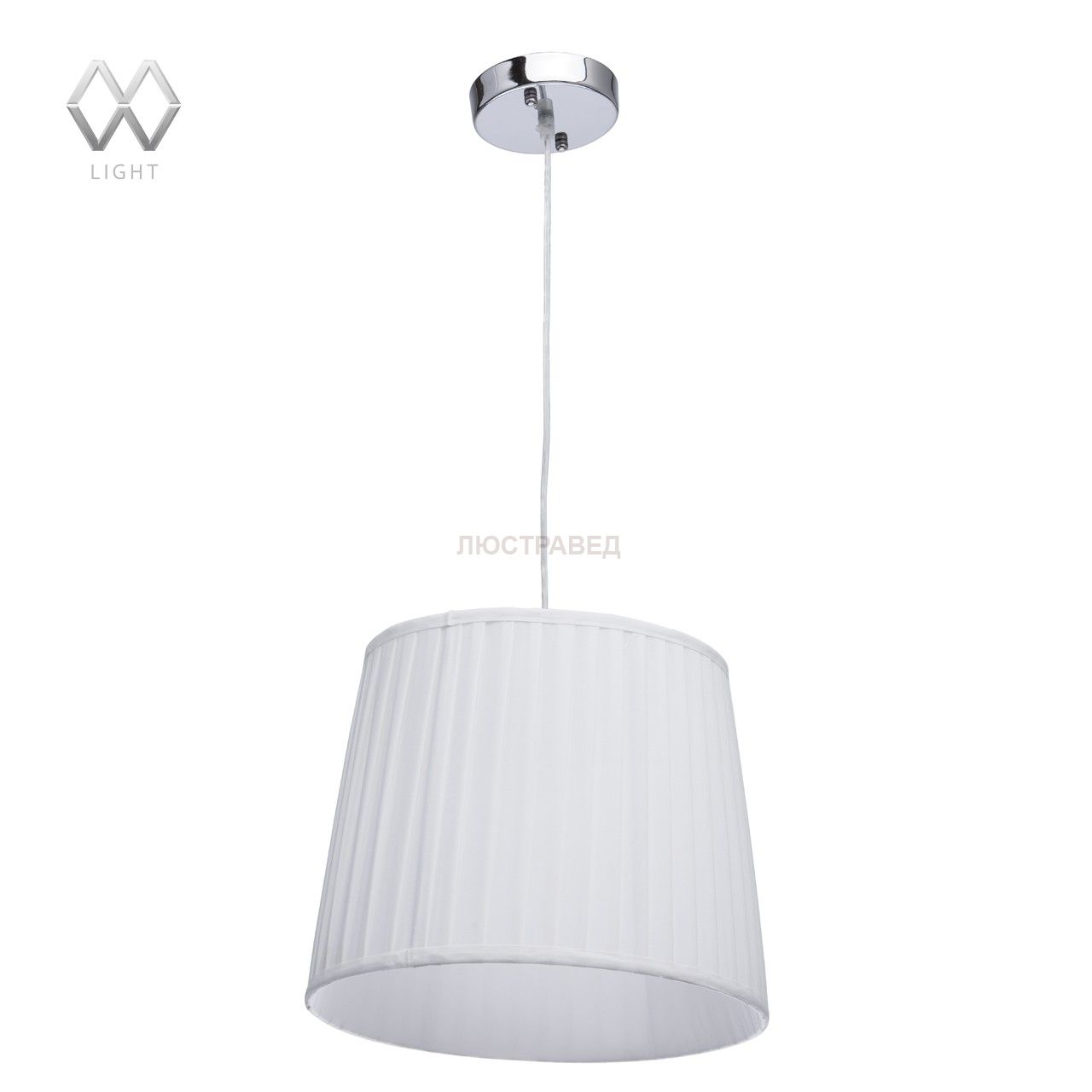 Металлическое основание цвета хрома, текстильный абажур белого цвета