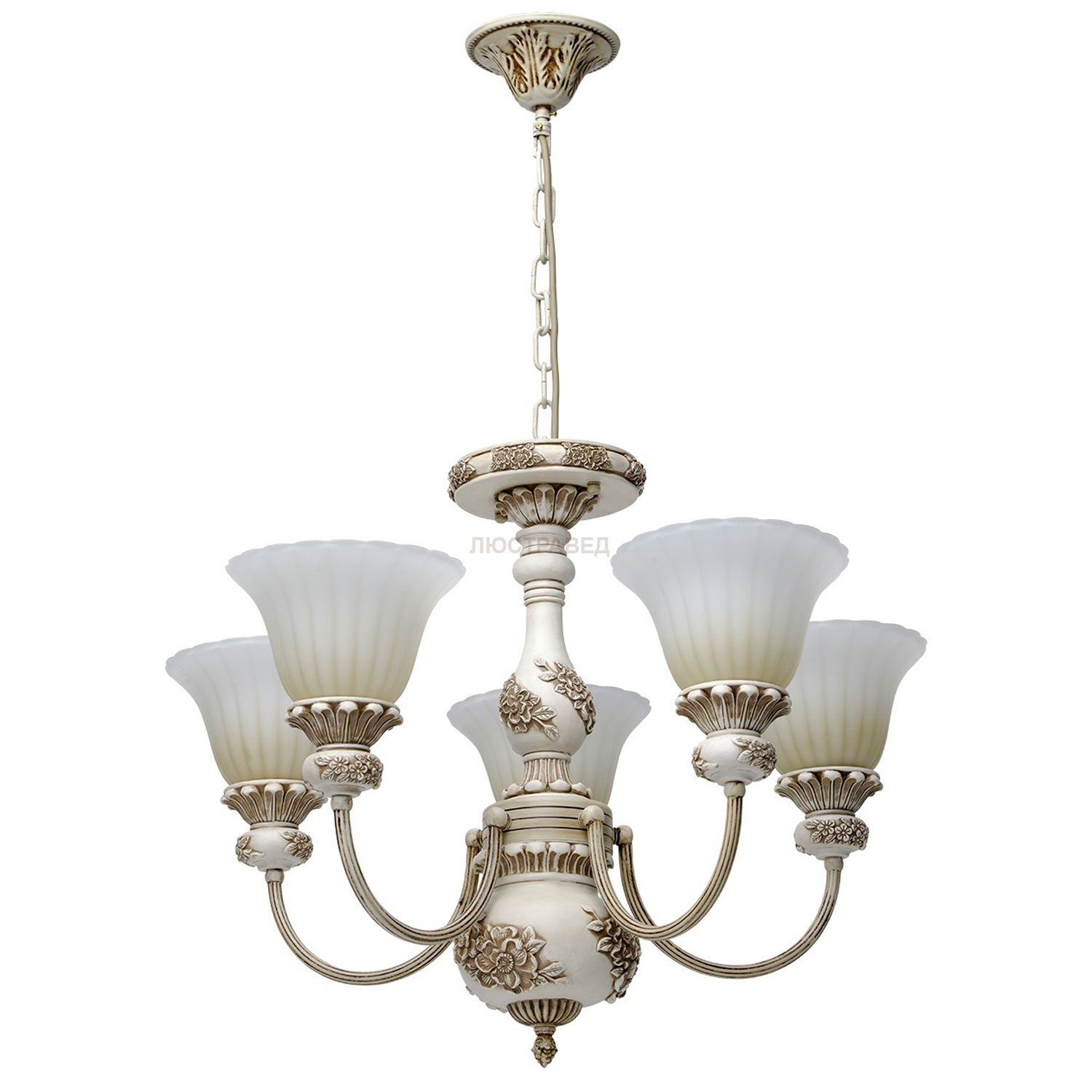 Металлическое основание цвета слоновой кости, декоративные элементы из искусственного каучука, плафоны из матового стекла