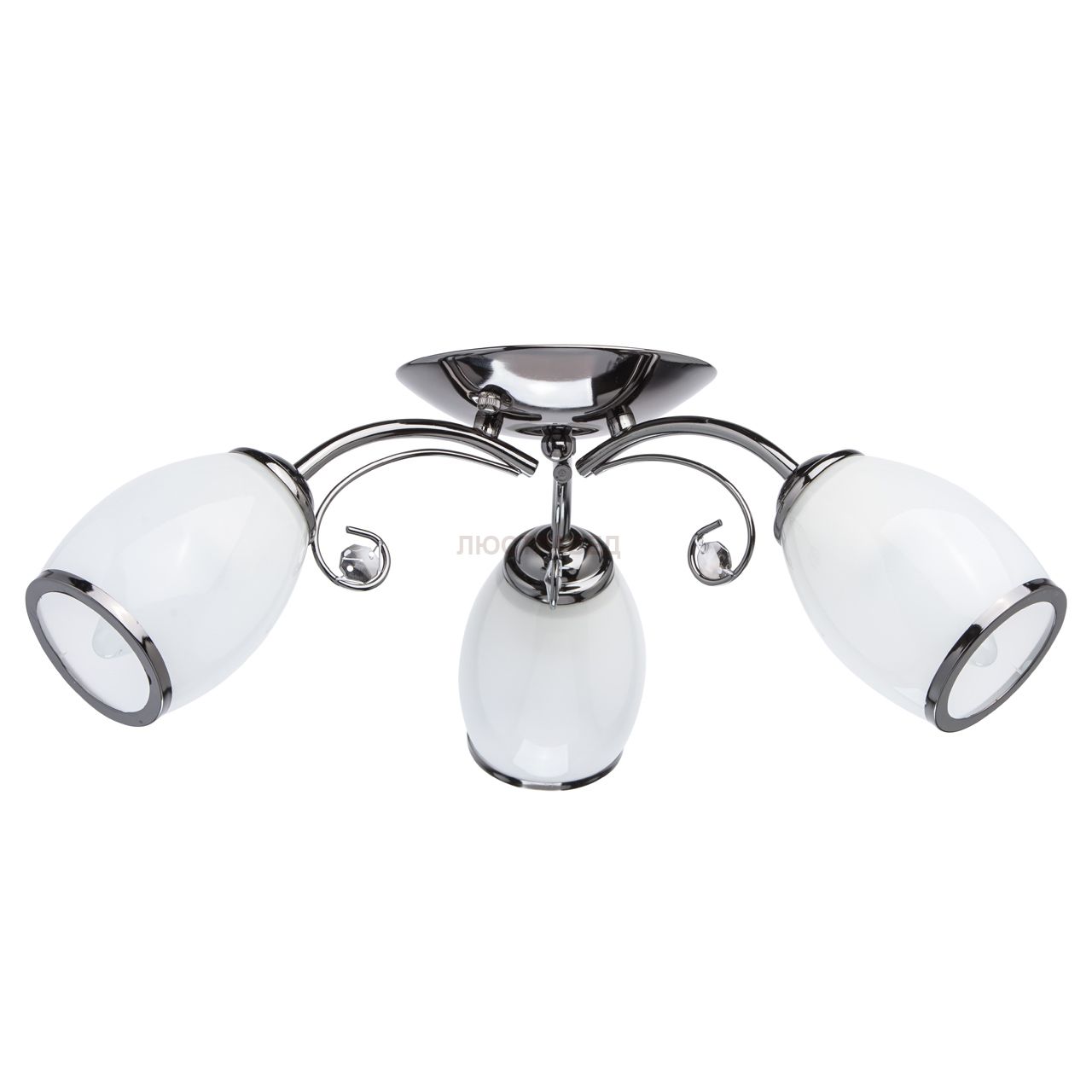 Основание светильника: облегченная сталь гальванизирована в цвет хрома.Плафоны - стекло.Декор: декоративное стекло.