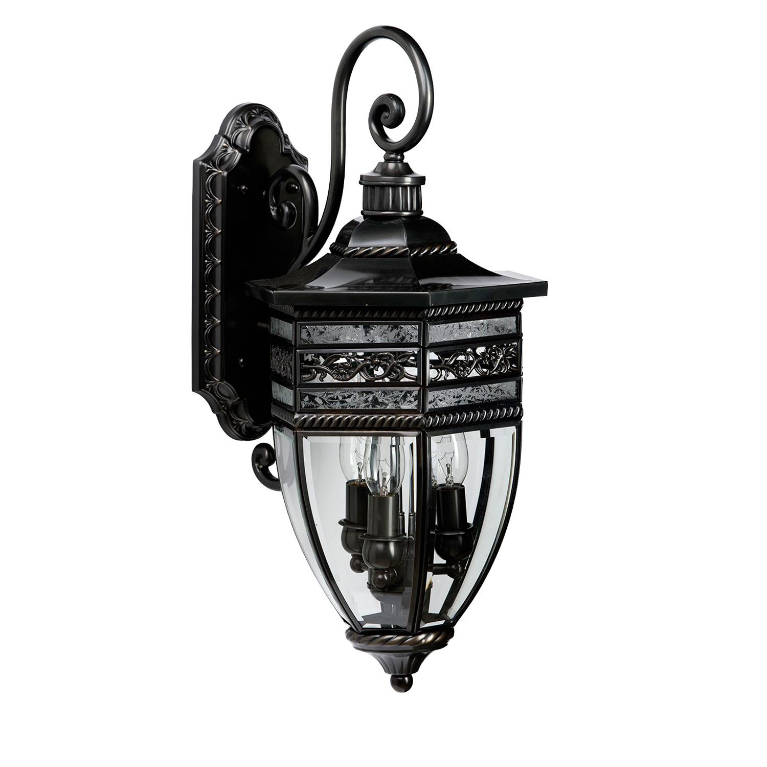 Светильник подходит для использования в интерьерах и экстерьерах. Оригинальный богатый дизайн, сочетание готических форм и изысканного декора. Стеклянный плафон с элегантными гранями, выполнены в стиле Тифани. Изящные декоративные элементы из латуни, покрытые темным лаком.