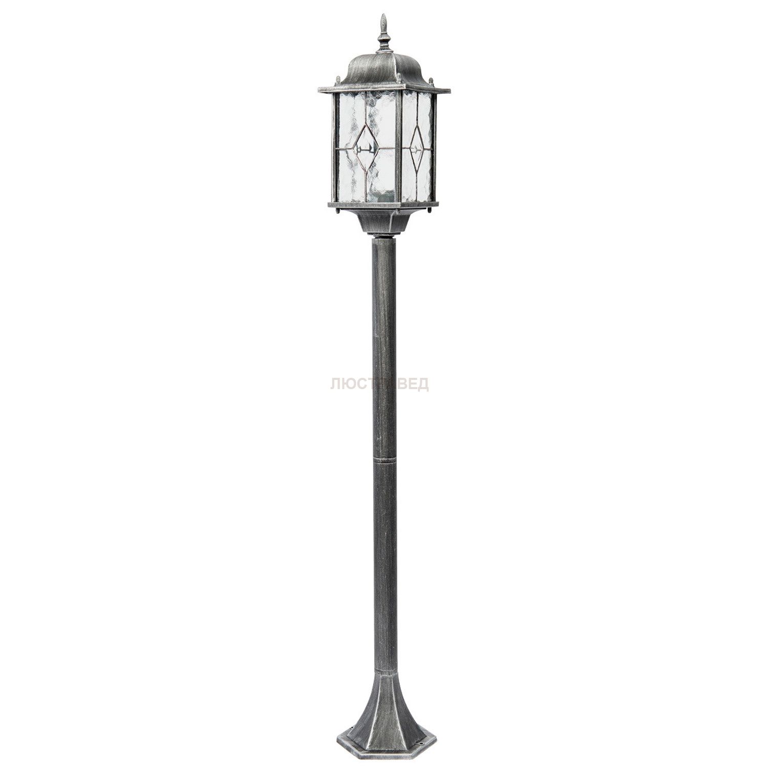 Основание из литого алюминия черного цвета, декорированное серебряной патиной, плафоны - витражное стекло