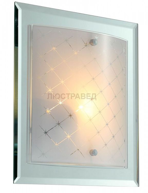 Настенно-потолочный светильник. Состоит из зеркала и матового стекла с пескоструйным рисунком.