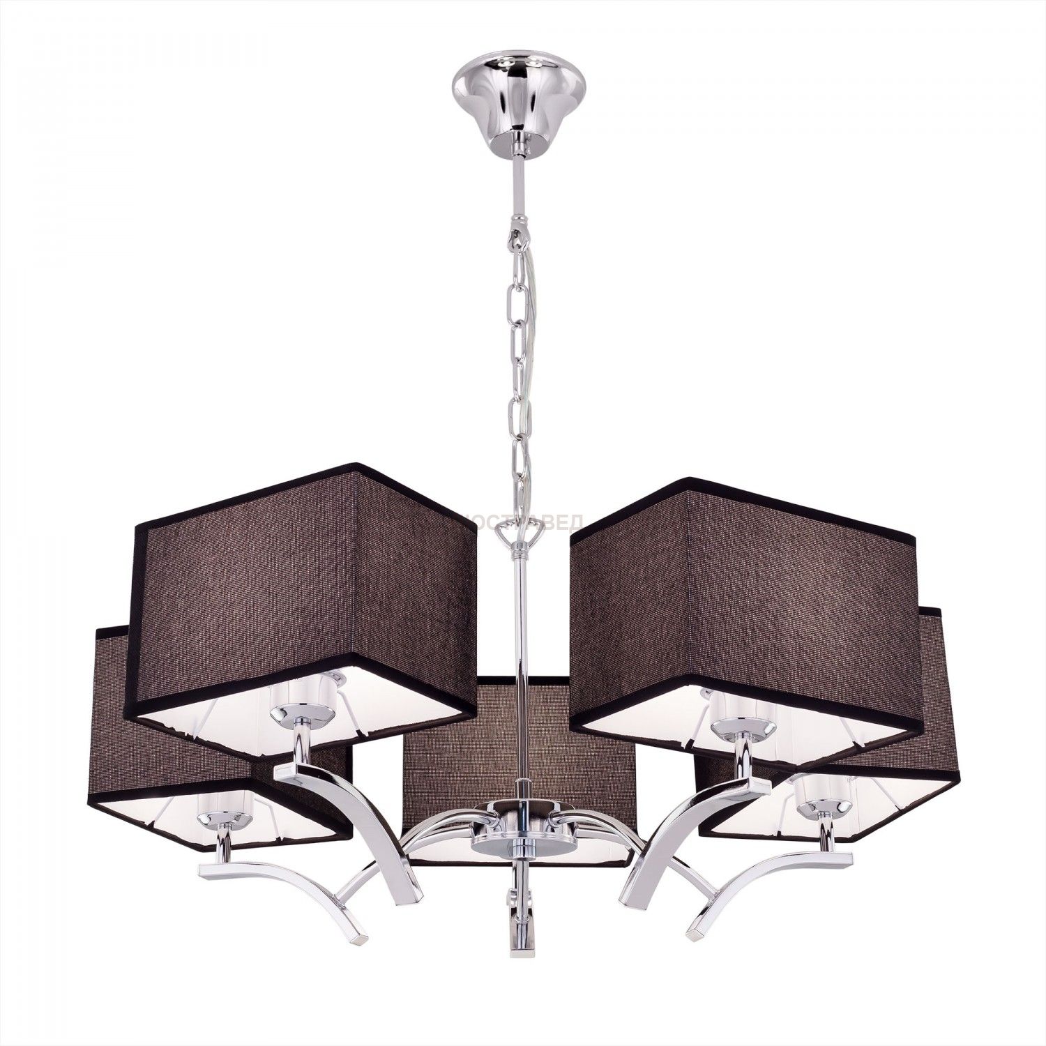Диаметр 68см, Высота 120см, Стальная хромированная арматура с прямоугольными текстильными абажурами, Проводка коммутирована на 2-клавишный выключатель