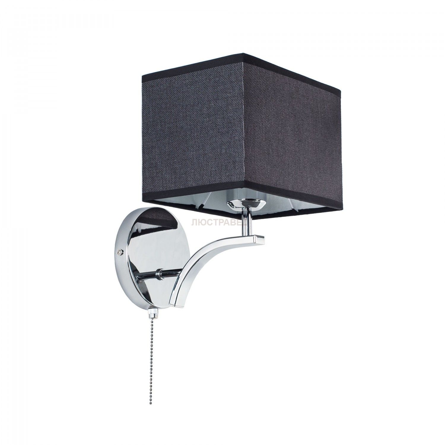 Ширина 20см, Высота 24см, Глубина 21см, Стальная хромированная арматура с прямоугольным текстильным абажуром, Встроенный выключатель с цепочкой