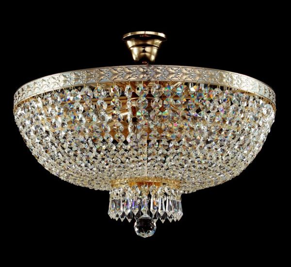 Каркас из металла. Патинированная лента из латуни с узором. Разнообразная огранка подвесок из *хрусталя.