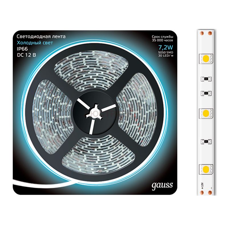 Отзывы Лента LED 5050/30-SMD 7.2W 12V DC холодный белый IP66 (блистер 5м)