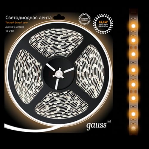 Лента LED 5050/60-SMD 14.4W 12V DC теплый белый (блистер 5м)