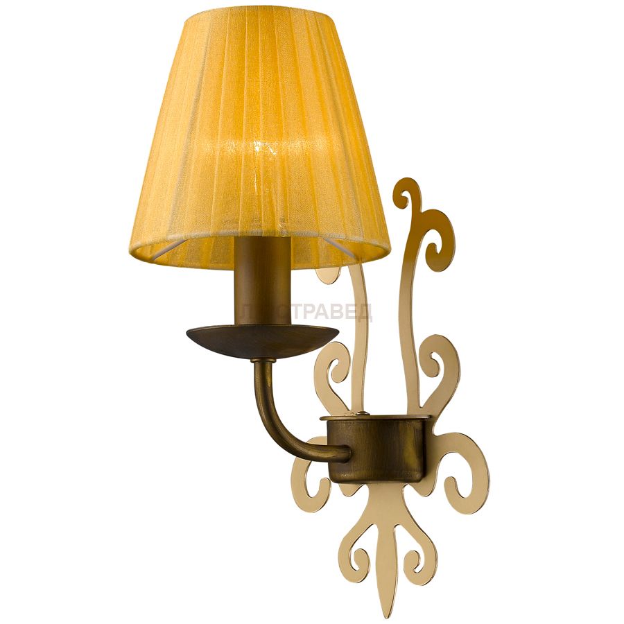 металл золотисто-коричневый с золотыми декоративными элементами, желтая органза, хрусталь