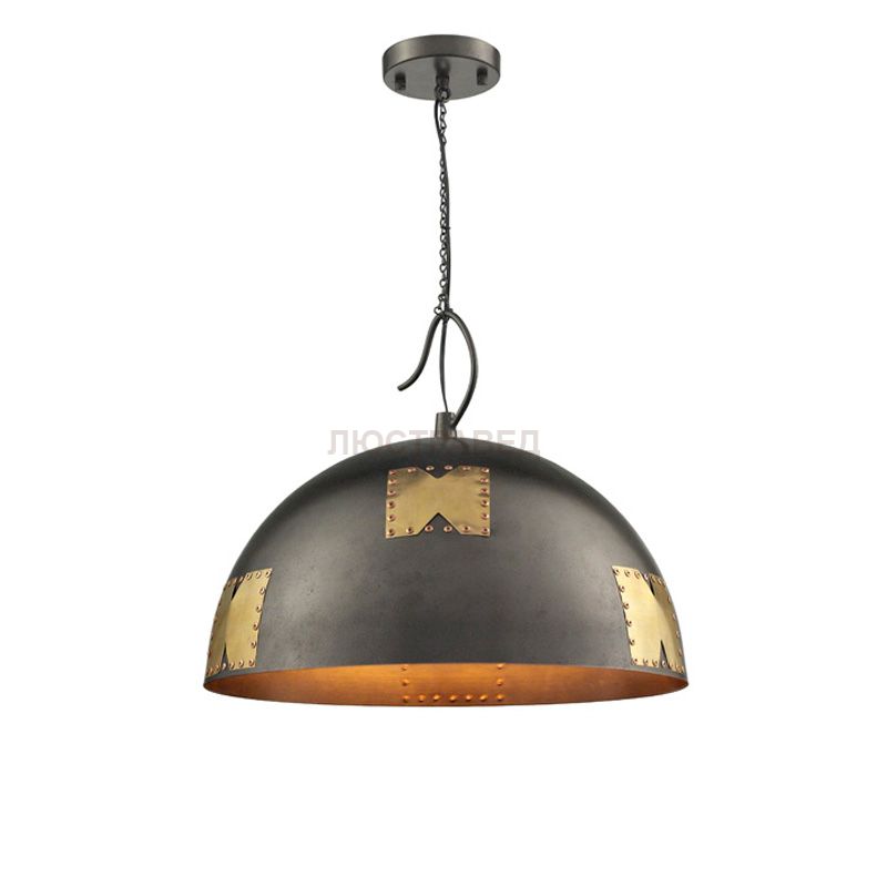 абажур металлический кофейного цвета с патиной снаружи и золотого цвета внутри, медные заплаты на декоративных заклепках