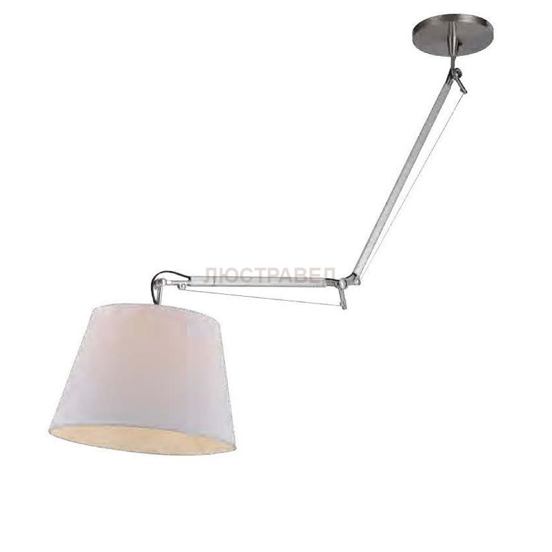 металл окрашен в серебряный цвет, абажур из белой ткани, трехступенчатая система сгибания основания