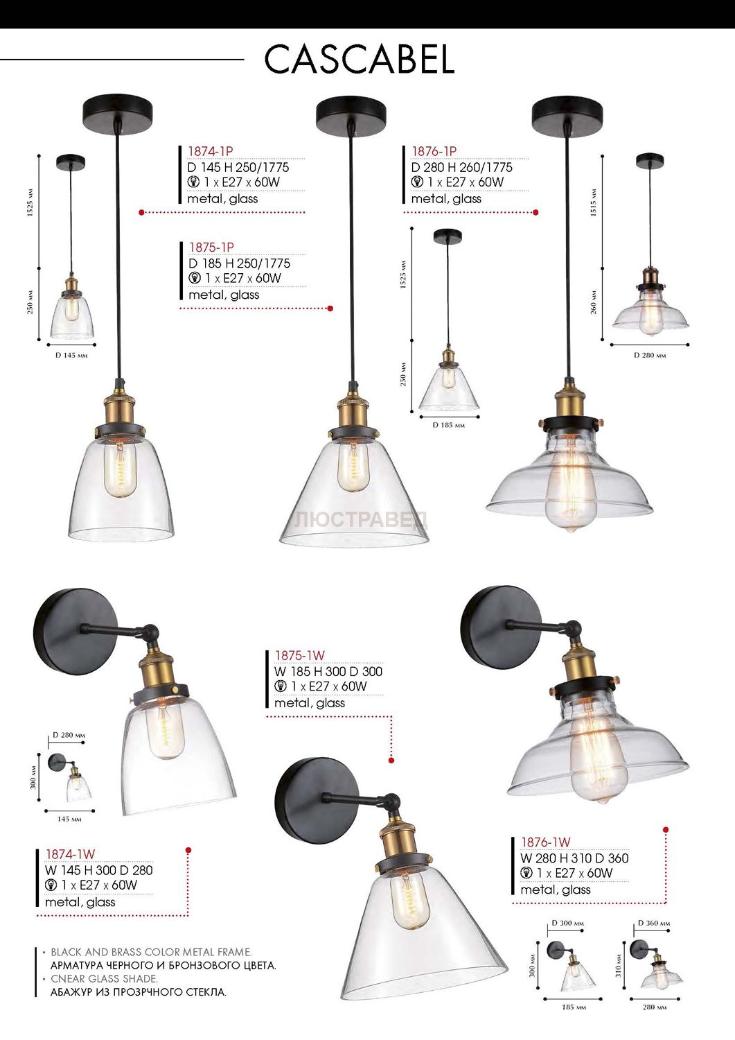 сочетание металла коричневого и бронзового цвета, прозрачный стеклянный плафон