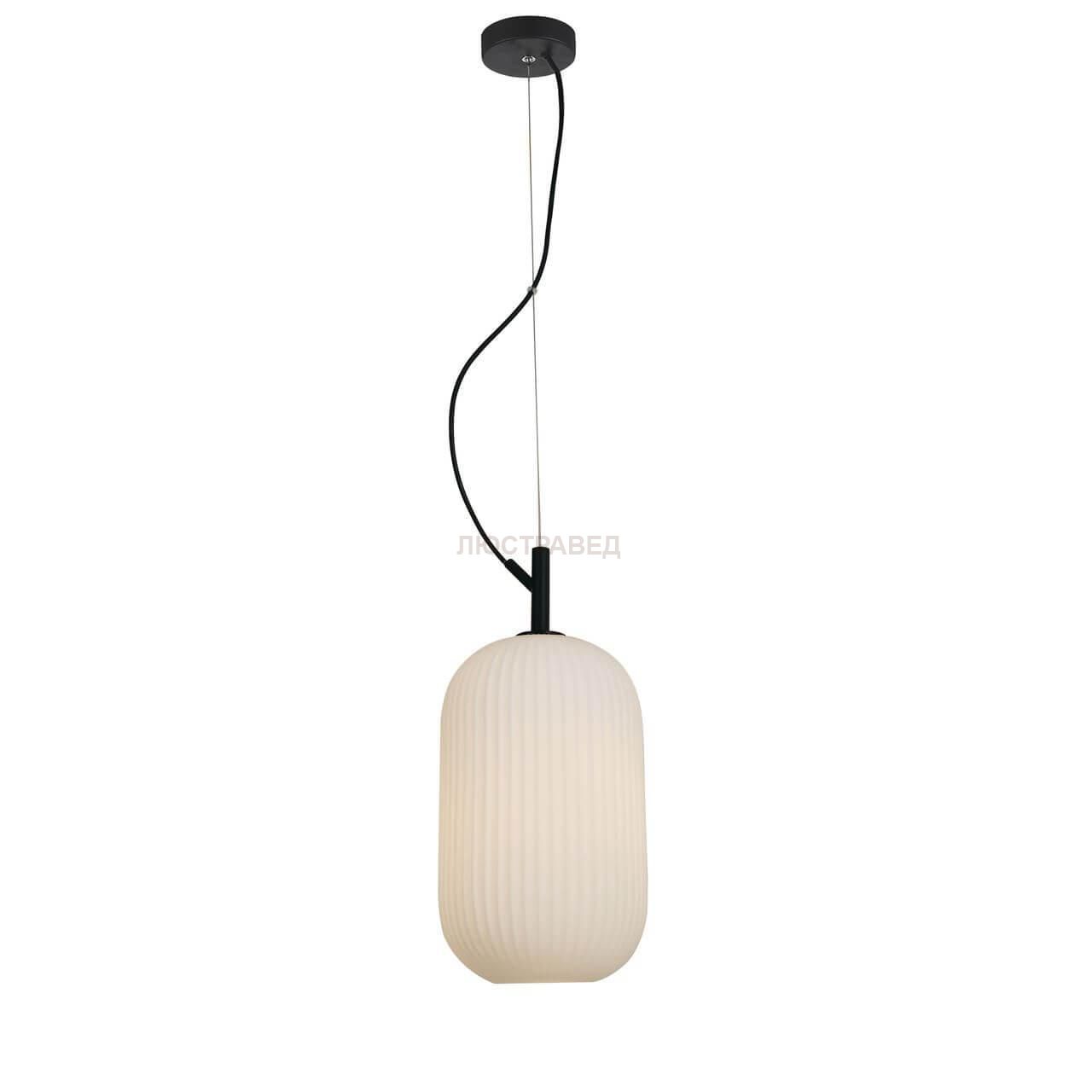 выдувной плафон из белого рифленого стекла, металлический каркас окрашен в черный цвет