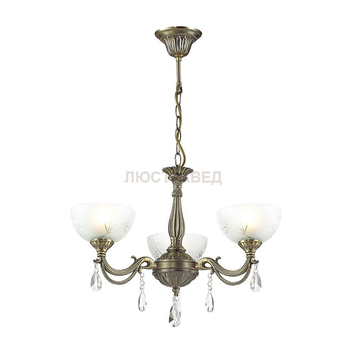 Арматура, декор: металл хрусталь, плафон: пескоструйное стекло