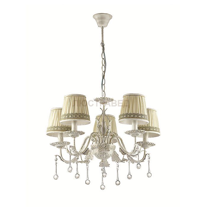 Арматура, декор: металлическая арматура украшена металлическими элементами и подвесками из стекла формой "капля"; плафон: абажур из органзы, украшенный кружевной тесьмой