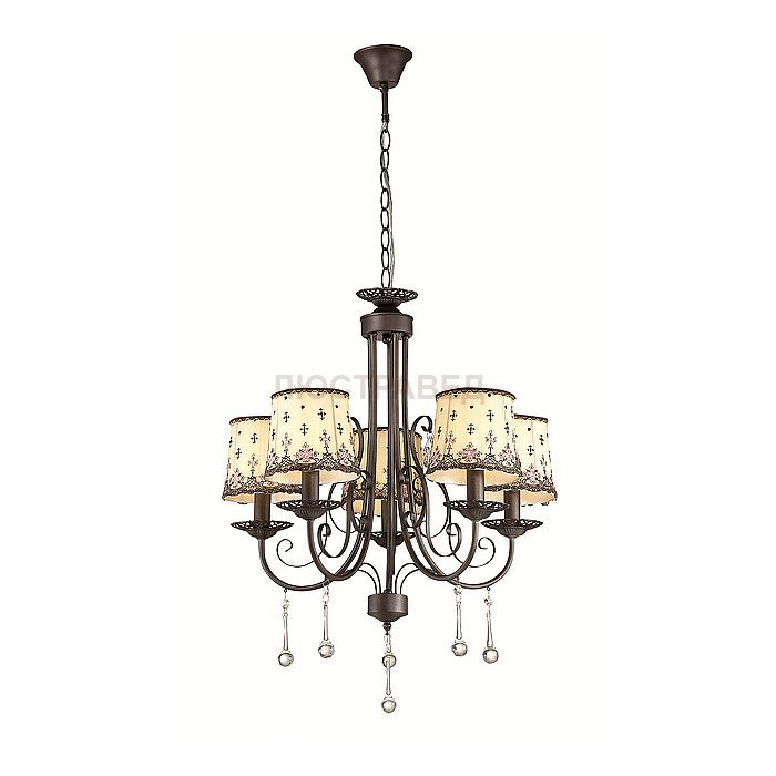 Арматура, декор: металлическая арматура украшена подвесками из хрусталя и стекла формой "капля"; плафон: тканевый абажур,с цветочным принтом, украшенный тесьмой