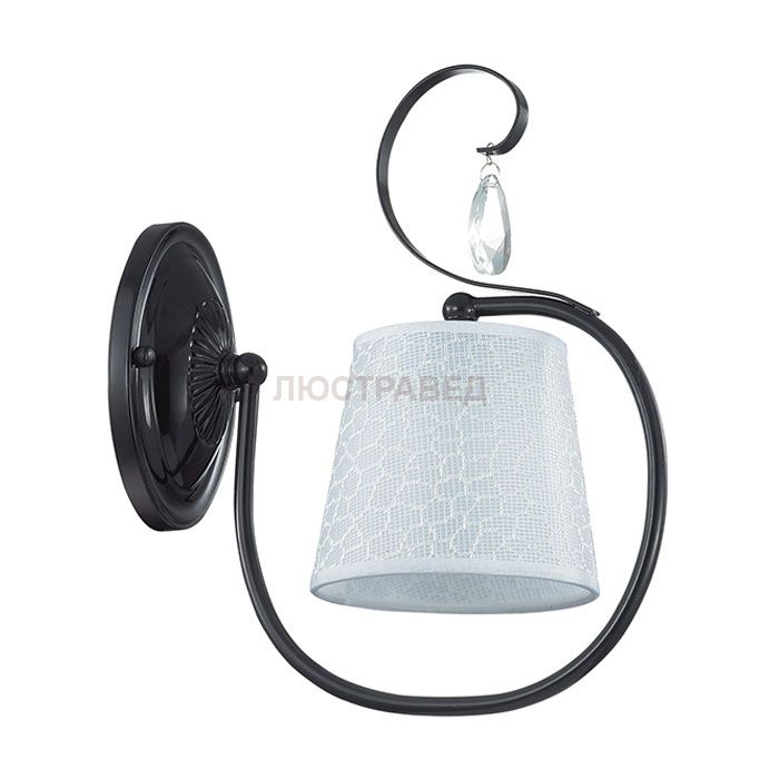 Арматура, декор: металлическая арматура украшена хрусталем; плафон: тканевый абажур