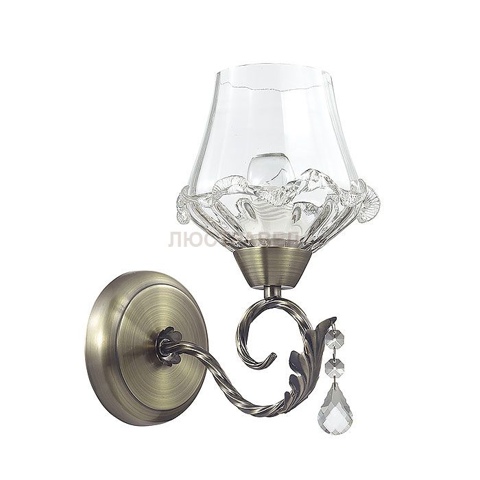 Арматура, декор: металлическая арматура украшена хрустальными подвесками; плафон: стекло