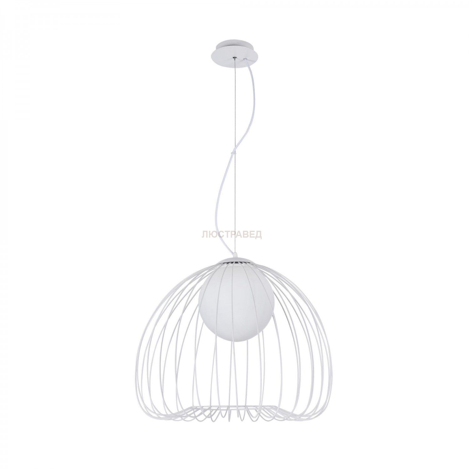 Каркас из металлических прутьев. Декоративный плафон из белого матового стекла.