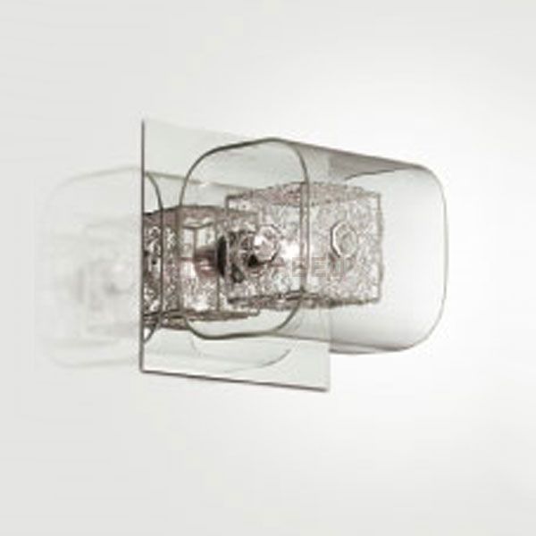 плафон: из прозрачного стекла кубической формы, металлический куб с встроенными хрустальными элементами, арматура: металл, декор: хрусталь