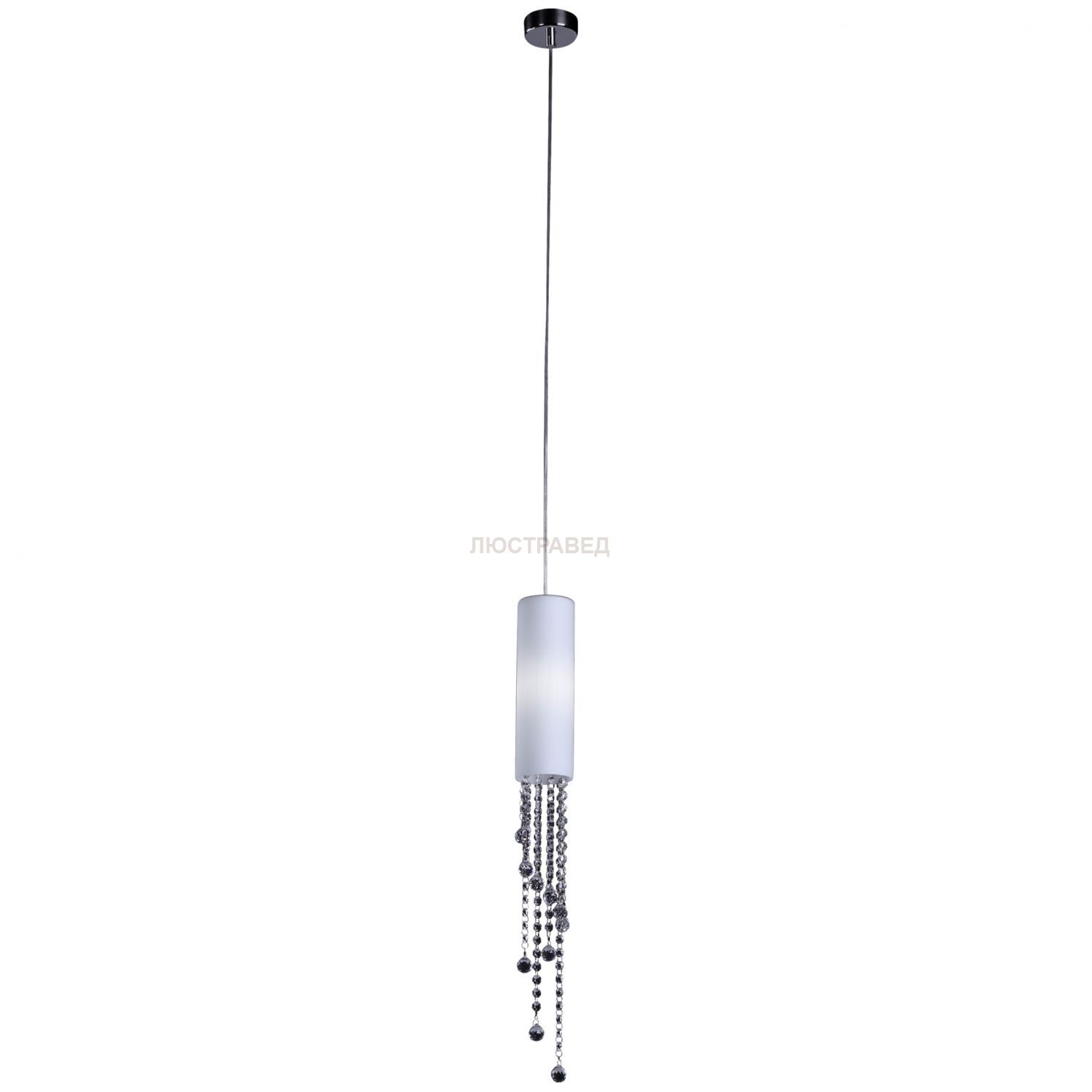 плафон: цилиндрической формы из белого стекла, арматура: металл, декор: хрусталь