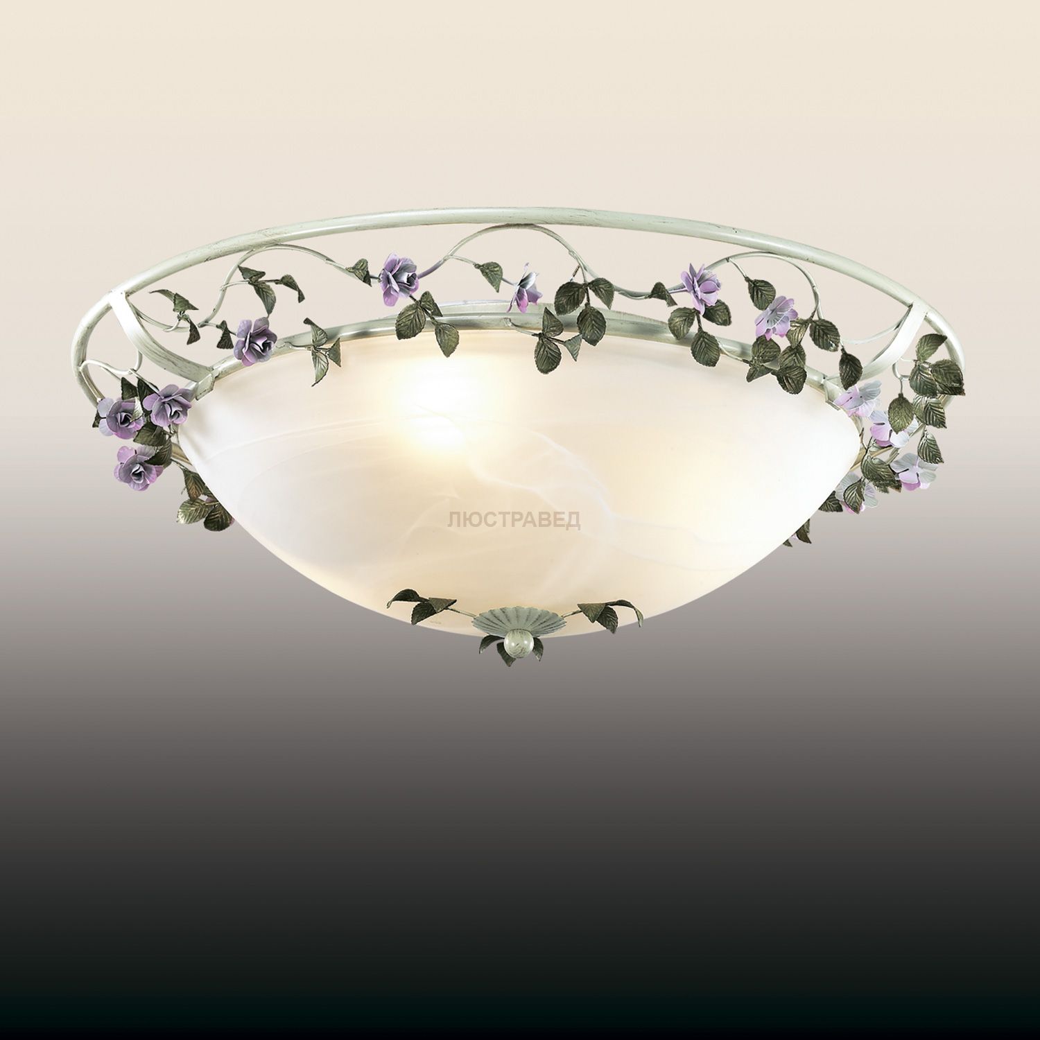 плафон: абажур из органзы с тесьмой, арматура: металл, декор: декор в виде цветов и листков из металла