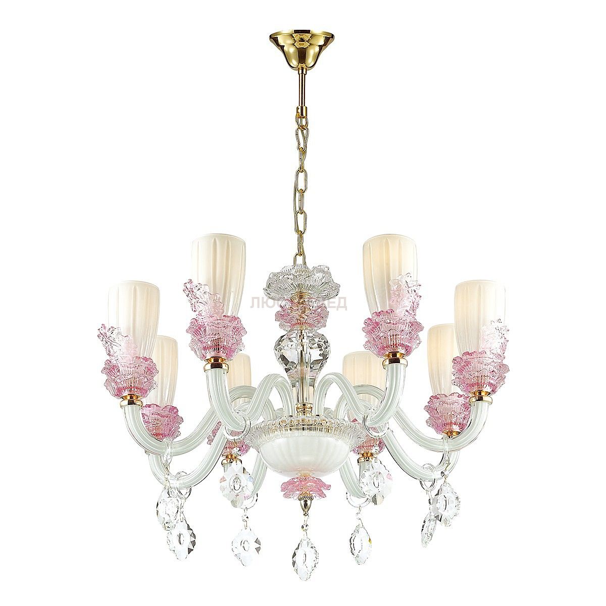 Арматура, декор: металл, стекло, хрусталь; плафон: стекло
