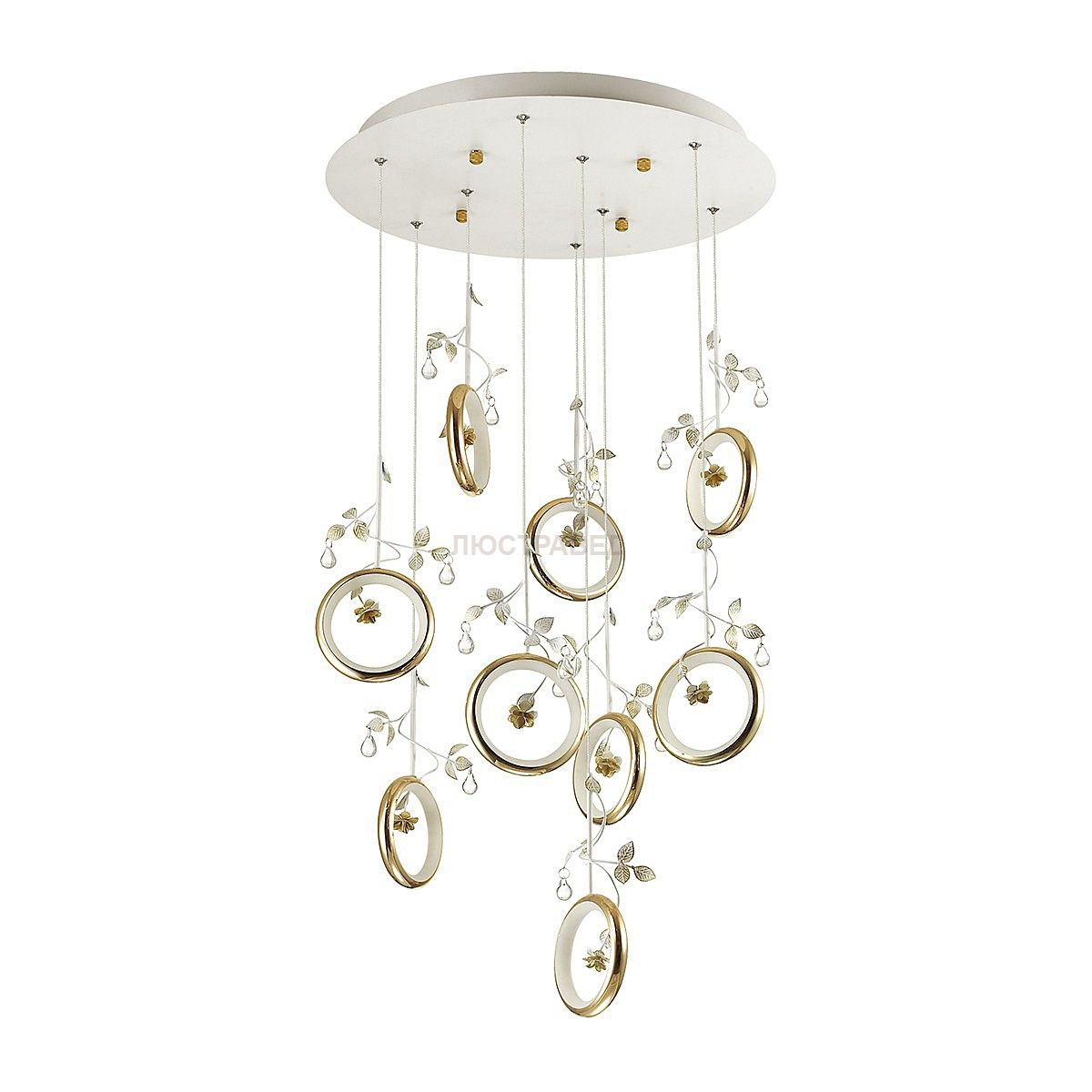 Арматура, декор: металл, стеклянные подвески; плафон: алюминий, акрил