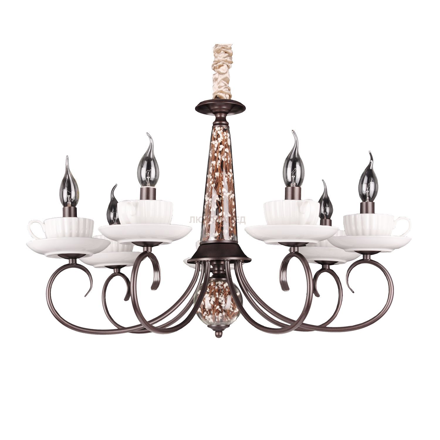 Плафон в виде чашки с блюдцем, декор из искуственных материалов.